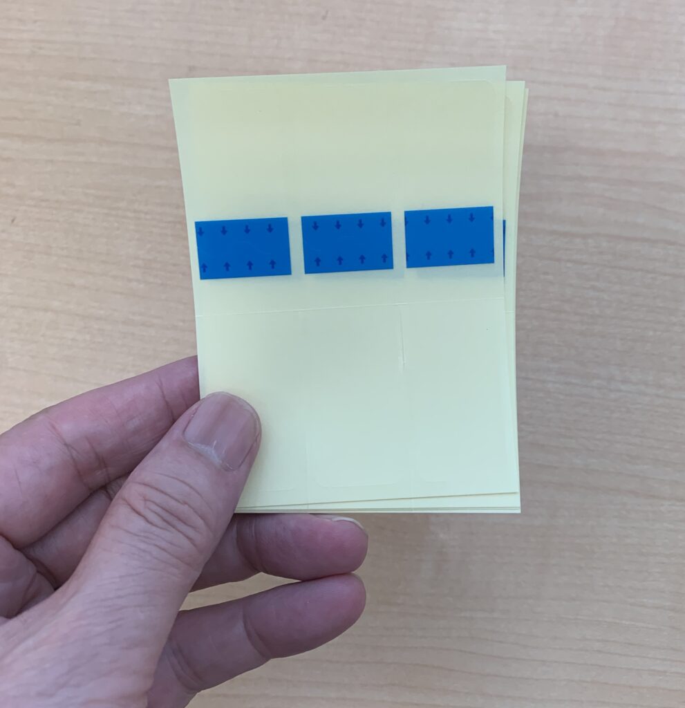 - Slowly peel off the blue protective film while pressing the tape into place.